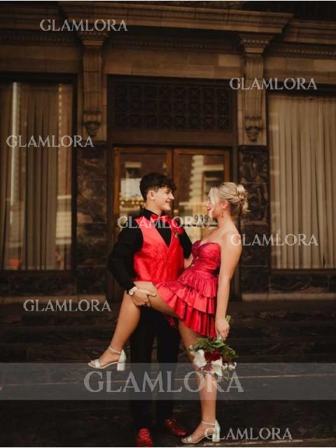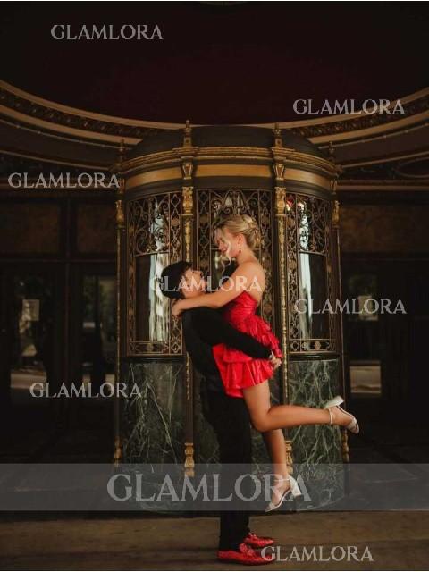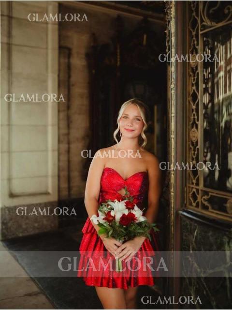This captivating short/mini dress exudes elegance and charm with its A-line silhouette and dramatic details.Designed with a sweetheart neckline, its elegant silhouette makes it perfect for parties, evening events, or special occasions.