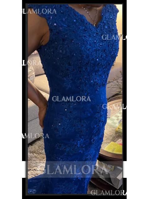 • Trumpet/Mermaid Flattering V-Neck Sleeveless Sweep Train Lace Mother of the Bride Dress With Lace