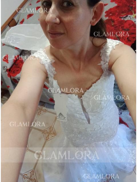Note:The dress does not include any accessories in the picture, such as wraps/jackets, gloves, veil, handbag, etc. The tulle matches the model's skin tone and ships by default. If you want to change the tulle color or have questions about it, you may choose to Chat now or Email us.