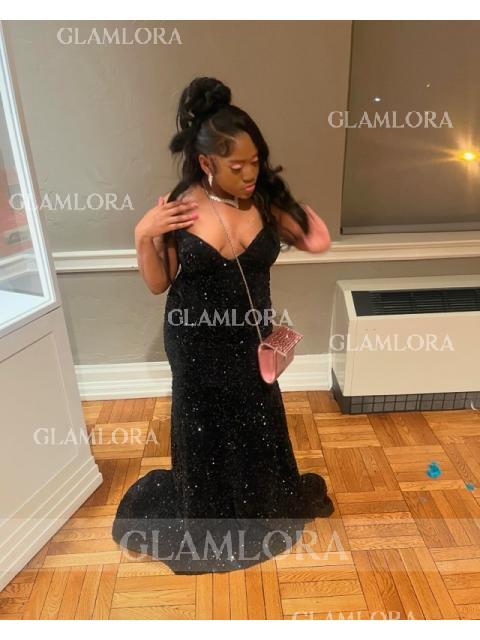 • Trumpet/Mermaid Sweetheart Sleeveless Dazzling Sweep Train Velvet Sequins Dress