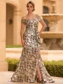 • Understated Sheath Off-the-Shoulder Ruffles Floor-Length Corset Mother of the Bride Dress