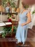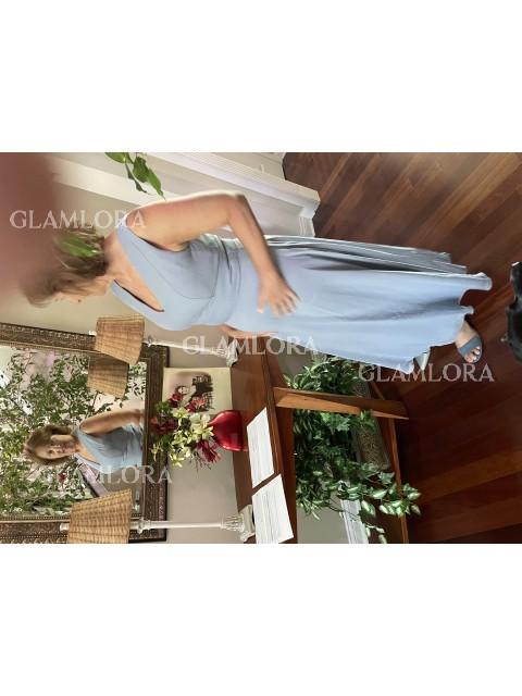 This mother of the bride dress showcases an A-line silhouette with a V-neck,sleeveless design,and an ankle-length chiffon skirt,offering a stylish and refined look.